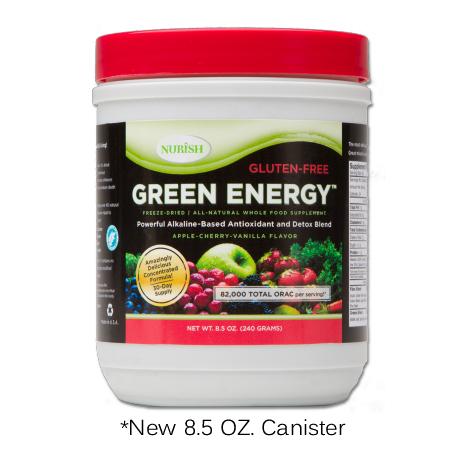 Green Energy™ is the best tasting green drink on the market, bar none. Its a delicious blend of 40 natural super foods that contains the antioxidant and phytonutrient power equal to 25 servings of fruits and vegetables (10,000 ORAC and 82,000 TOTAL ORAC) per serving. Green Energy™ is a vegetarian-based powder made up of certified organic and natural whole foods. Each scoop is packed with probiotics, enzymes, fibers, plant proteins, vitamins, minerals, antioxidants,phytonutrients and much, much more! Its diabetic safe, stimulant-free, and hypoallergenic. It contains no artificial colors, flavors, gluten,MSG, GMO (genetically modified organisms), wheat, corn, dairy, or added sugar.